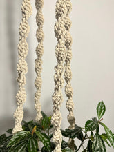 This sustainable, handmade 180cm (70.8"), neutral tone macrame plant hanger is a stylish and eco-friendly addition to any home. Expertly crafted with spiral knots. It features a large metal ring and finishes with gathering knot and elegant tassels to complete the design, enhancing its handcrafted charm while offering both beauty and functionality.