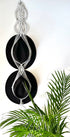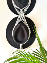 This elegant handmade 96cm (37.8") Light Grey macrame hat holder combines style and functionality, designed to beautifully display up to two hats. It features expertly crafted Alternating square knots, surrounded by double hitch knots. Starting with a small silver metal ring and finished off with gathering knot.