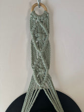 This elegant handmade Sage in colour 124cm (48.8") macrame hat holder combines style and functionality, designed to beautifully display up to two hats. It features expertly crafted Double hitch knot. Starting with a Small pine wooden ring, square knots gathering and fringe that provides the finishing touch.